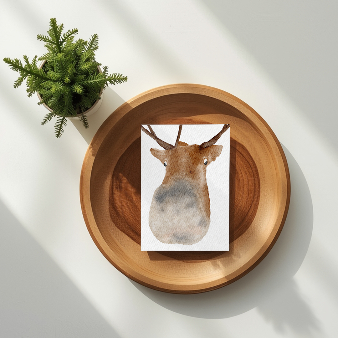 Ein Rentier in Aquarell – charmant und winterlich zugleich. Diese Karte eignet sich ideal für Weihnachtsgrüße, aber auch als winterlicher Gruß zwischendurch.